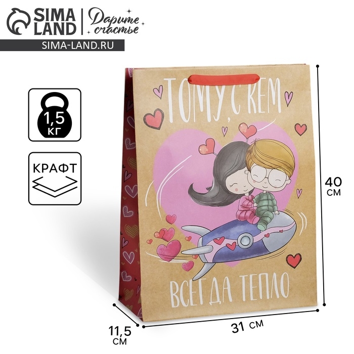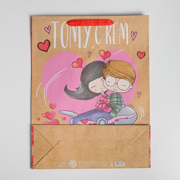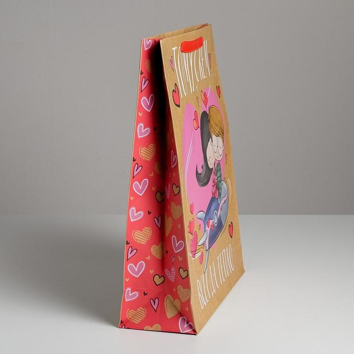 Пакет подарочный крафтовый вертикальный, упаковка, «Любовь, любовь», L 31 х 40 х 11,5 см