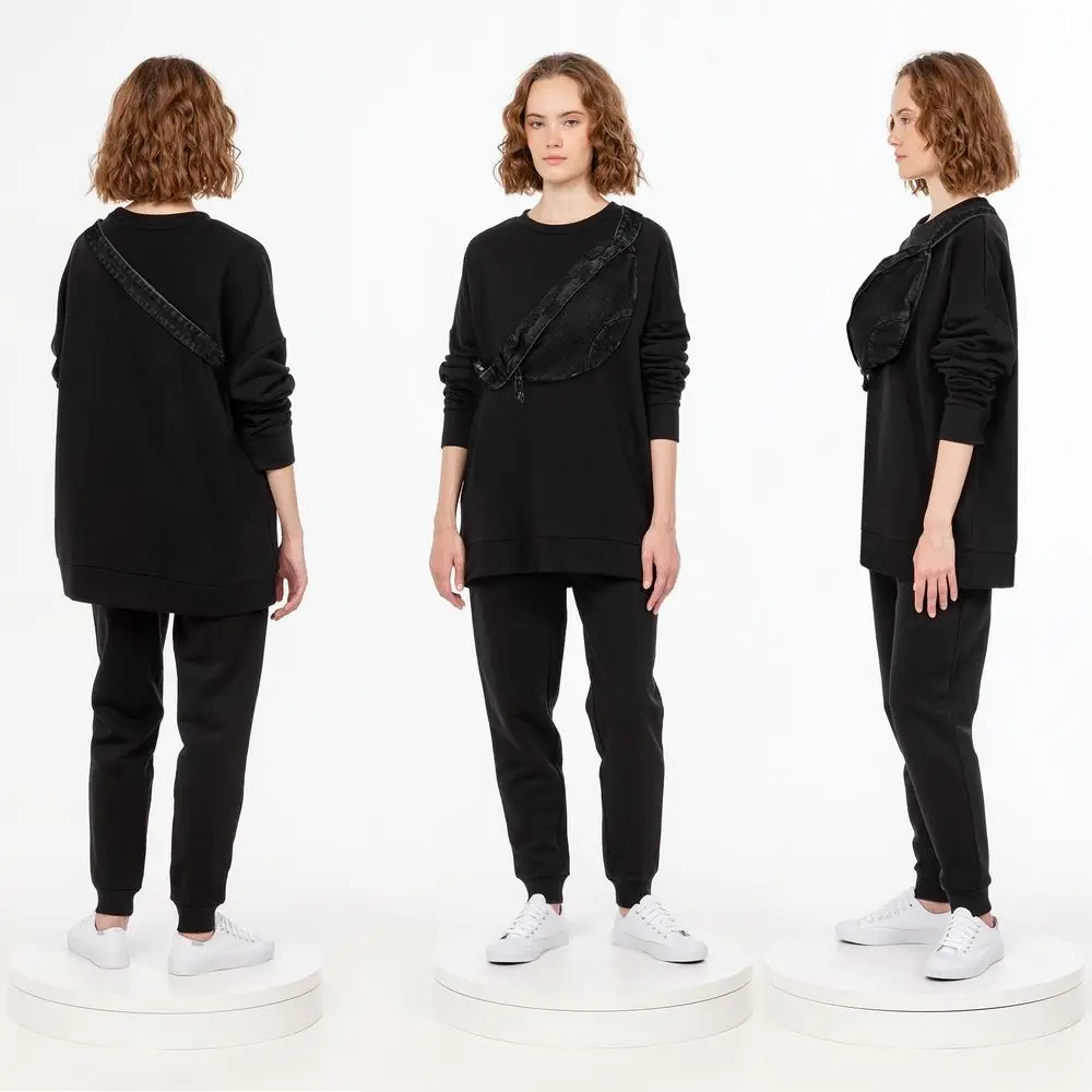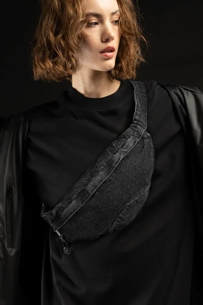 Базовая поясная сумка из джинсовой ткани разработана в рамках единой коллекции и легко собирается в комплекты. Специально спроектированные лекала и технологии пошива открывают простор для любых вариантов кастомизации и нанесения изображений. На видимой части изделий нет лейблов с айдентикой бренда, а название бренда с уходника легко удалить.