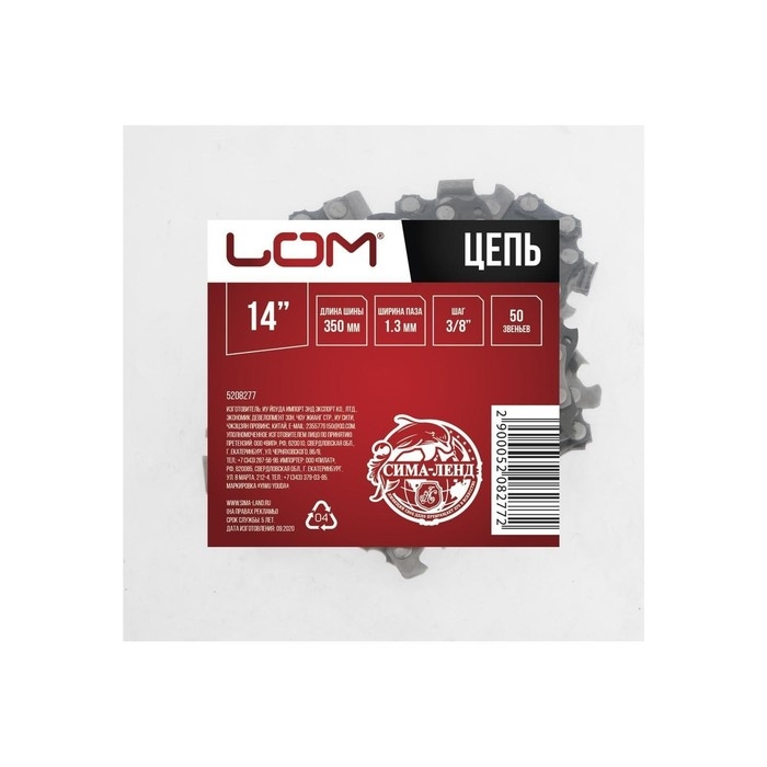 Цепь для бензопилы ЛОМ, 14", 350 мм, ширина паза 1.3 мм, шаг 3/8", 50 звеньев