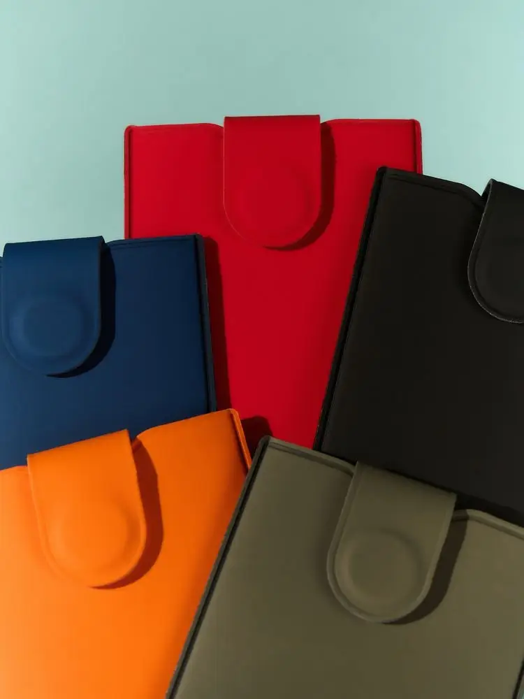Благодаря выдвижному механизму, потянув за хлястик, можно с легкостью отыскать нужную карту. Магнит на хлястике надежно защитит содержимое.