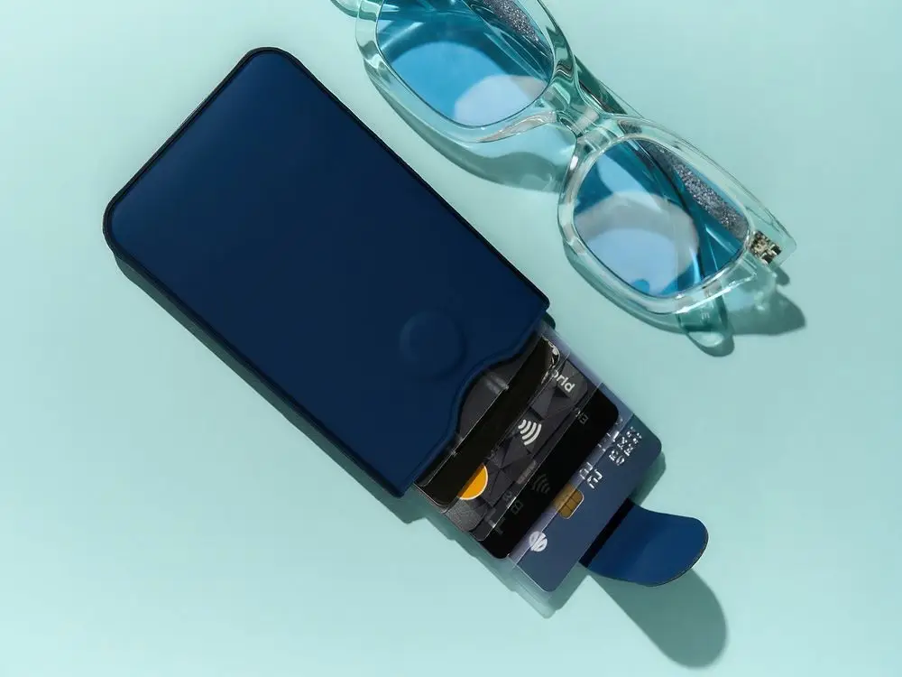 Чехол с выдвижным механизмом на 5 карточек и кармашком на 1 карточку, закрывается на магнит.