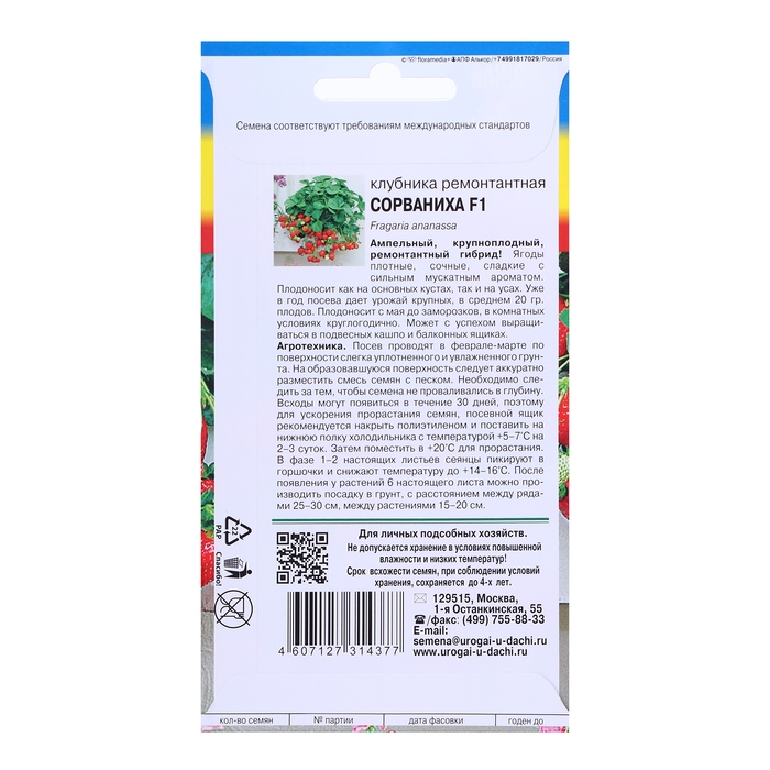 Семена Клубника ремонтантная "Искушение", F1, 5 шт.