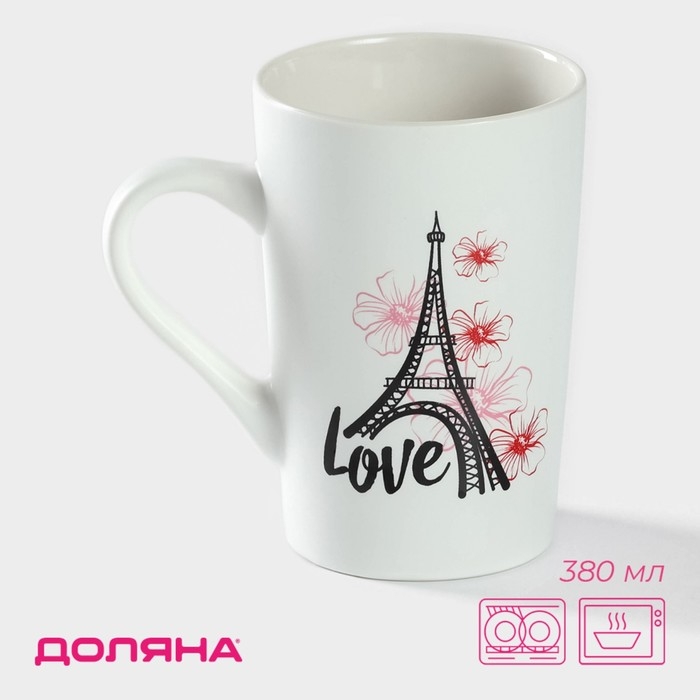 Кружка фарфоровая Доляна «Любовь в париже», 380 мл, цвет белый