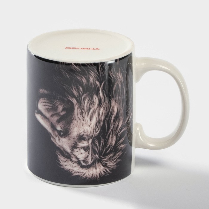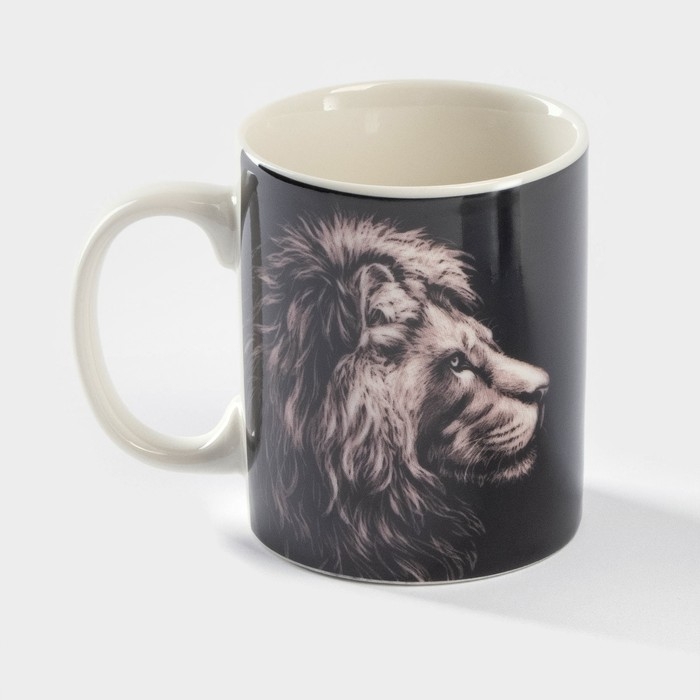Кружка фарфоровая Доляна «Львинная сила», 320 мл, цвет чёрный