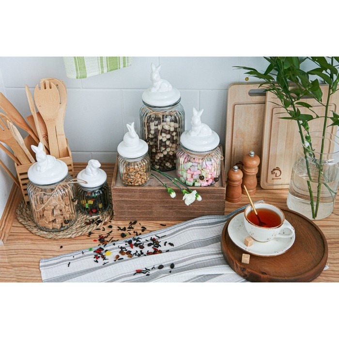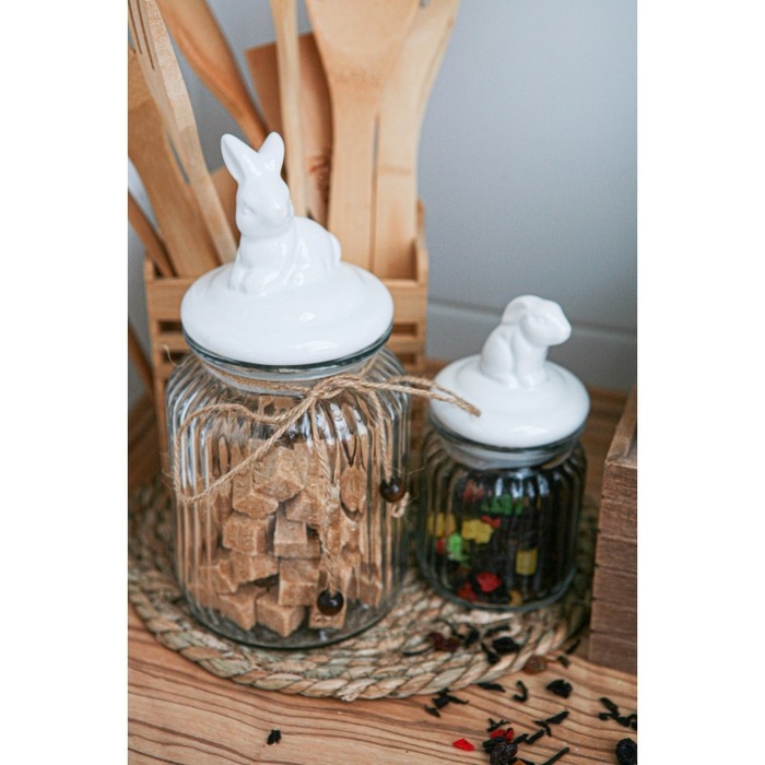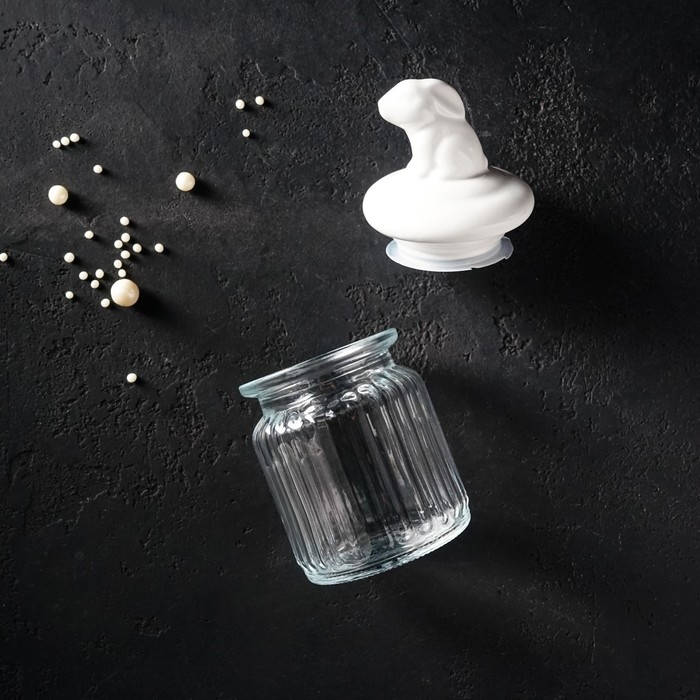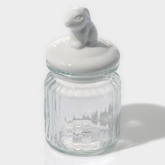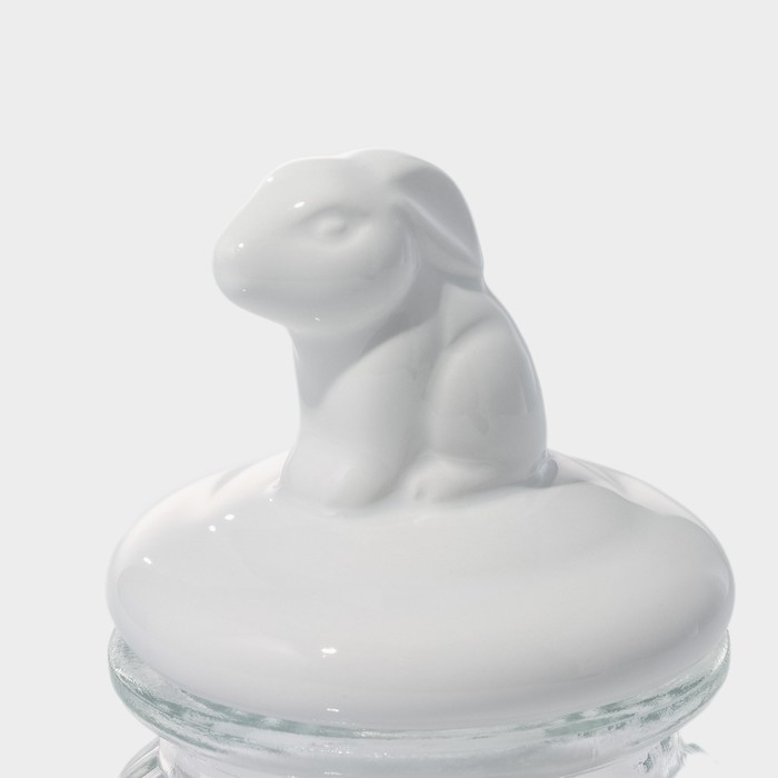 Банка стеклянная для хранения сыпучих продуктов Доляна «Зайка», 230 мл, с керамической крышкой