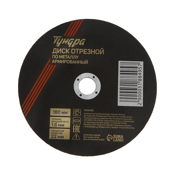 Круг отрезной по металлу ТУНДРА, армированный, 180 х 1.6 х 22 мм