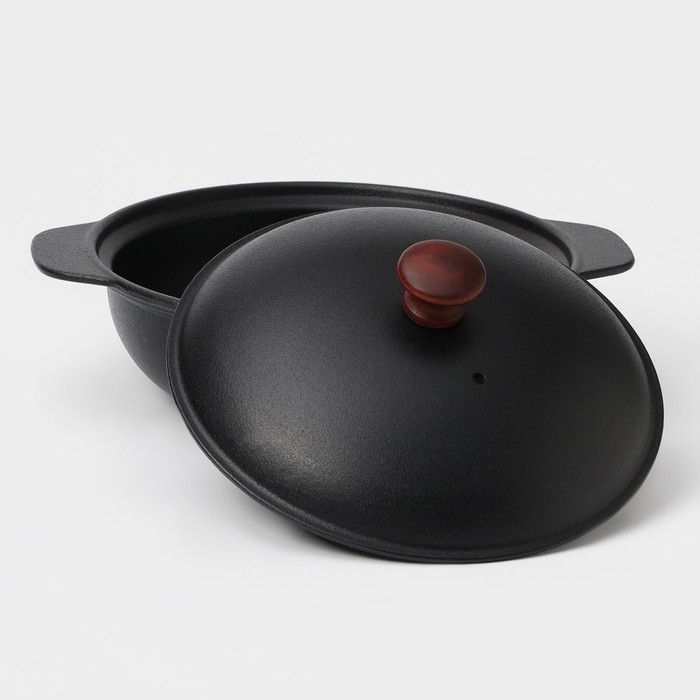 Жаровня чугунная, 2 л, d=24 см, чугунная крышка, цвет чёрный