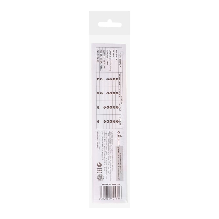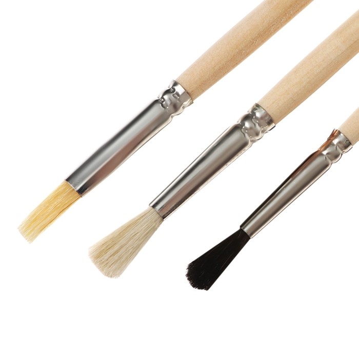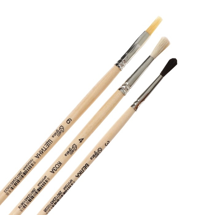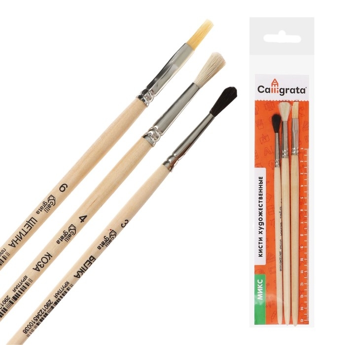 Набор кистей Микс 3 штуки, Calligrata №5 (круглые: Белка № 3, Коза № 4; плоская Щетина № 6), деревянная ручка