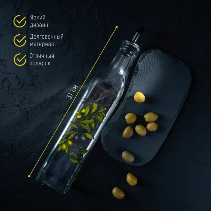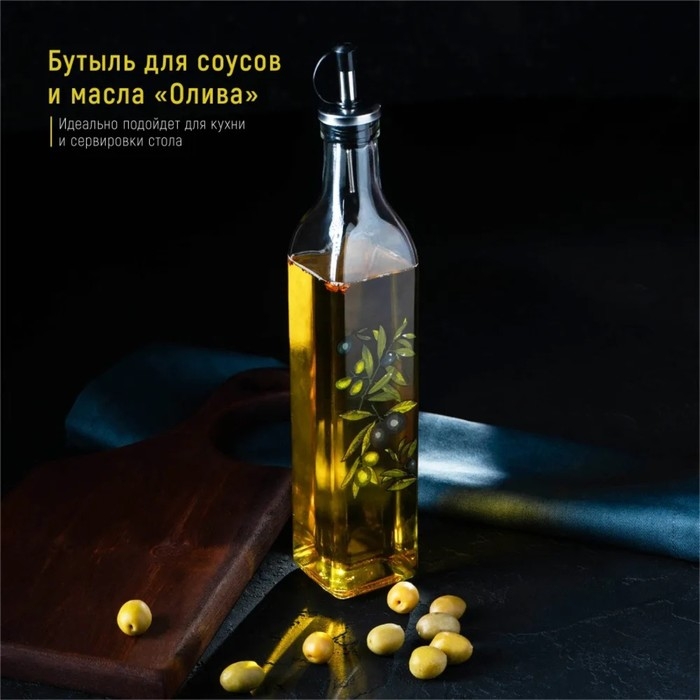 Бутылка стеклянная для соусов и масла Доляна «Олива», 500 мл, 6×29 см