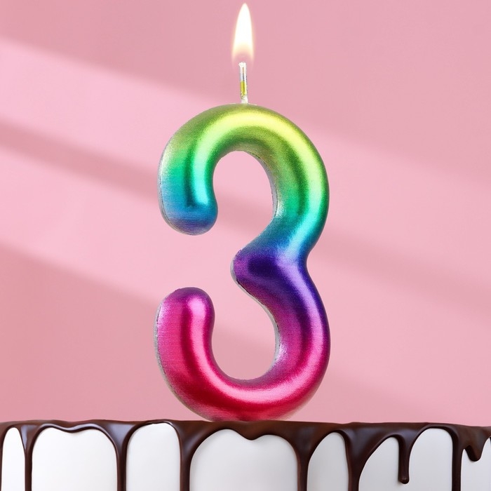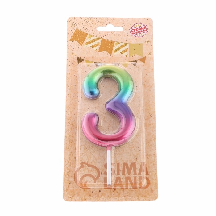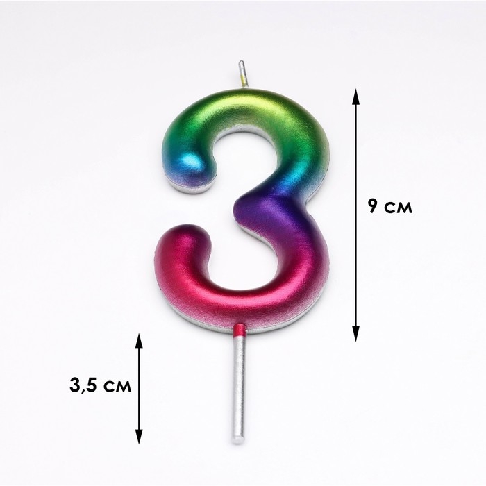 Свеча в торт "Акварель", цифра 3, 9 см, ГИГАНТ