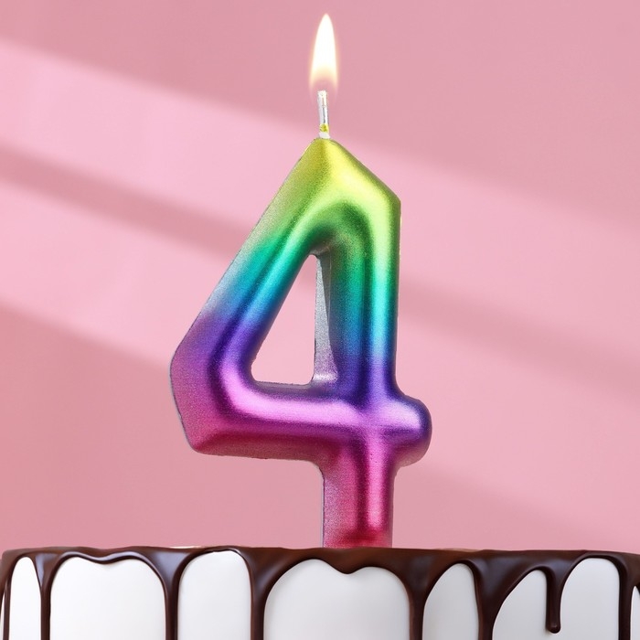 Свеча в торт "Акварель", цифра 4, 9 см, ГИГАНТ