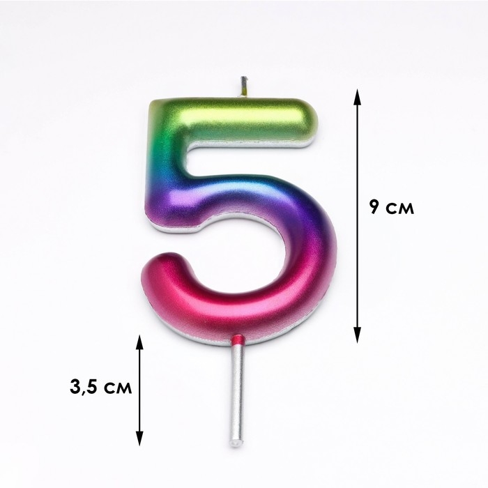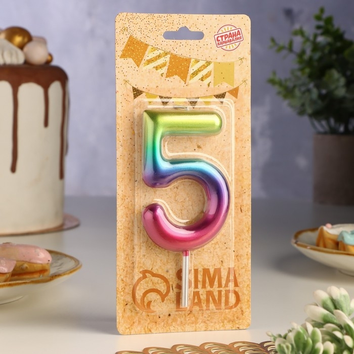 Свеча в торт "Акварель", цифра 5, 9 см, ГИГАНТ