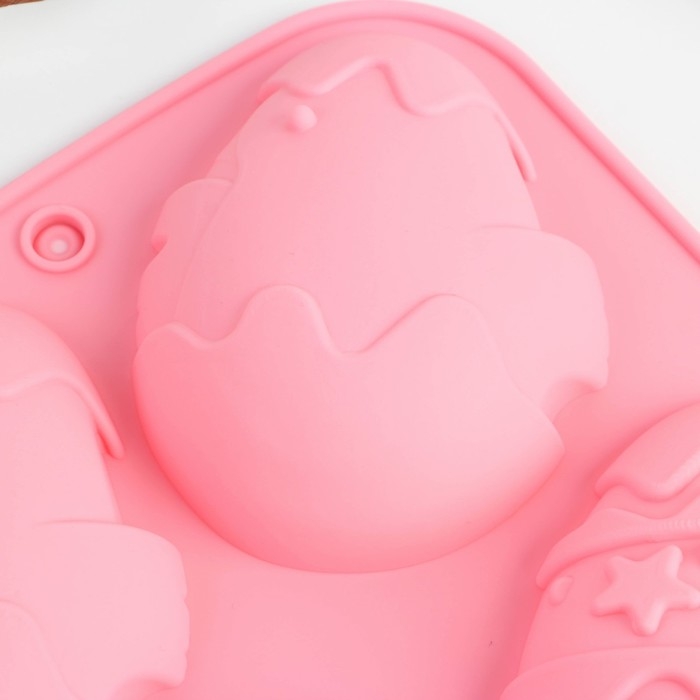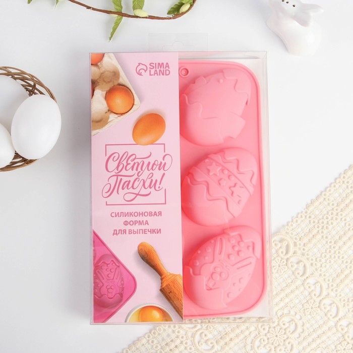 Силиконовая форма на Пасху «Зайцы и цыплята», розовая