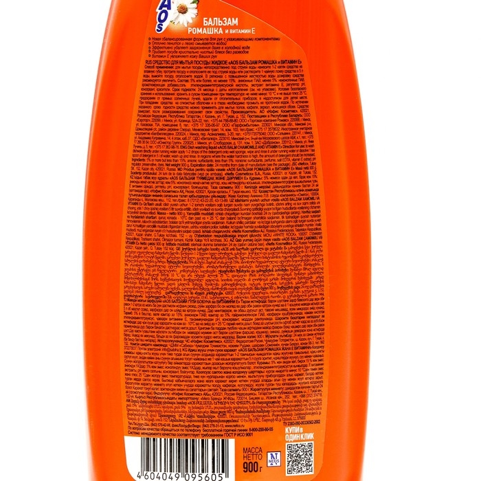 Средство для мытья посуды, AOS Бальзам ромашка и витамин Е 900 гр.