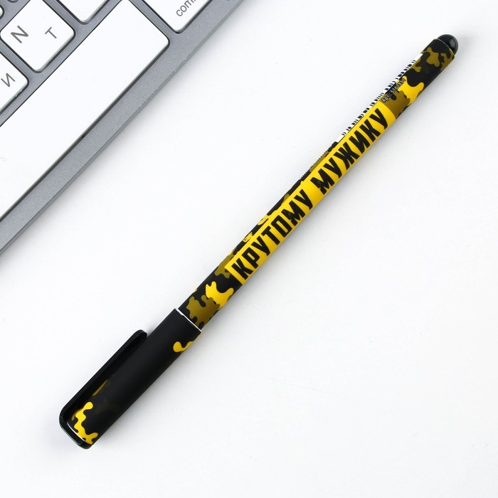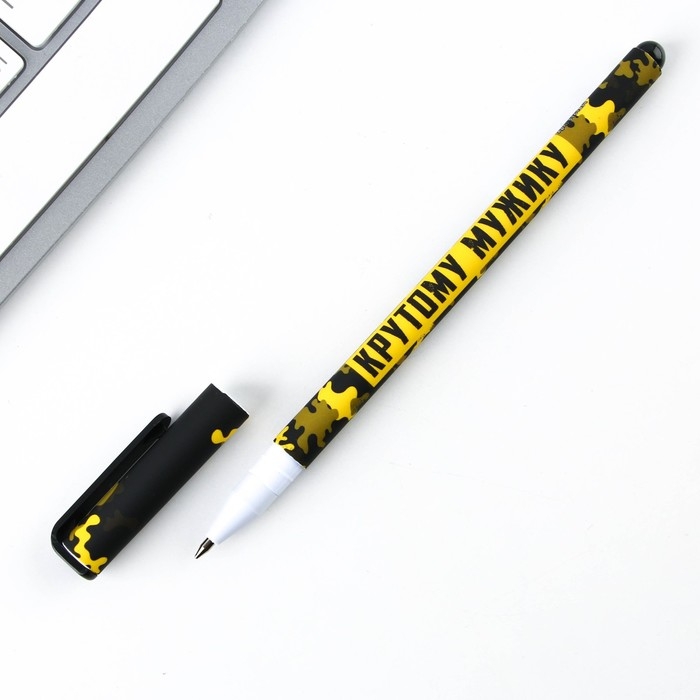 Ручка шариковая синяя паста 0.7 мм с колпачком «Крутому мужику» пластик софт-тач