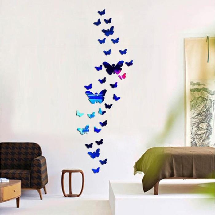 Наклейки интерьерные "Бабочки", зеркальные, декор на стену, набор 36 шт