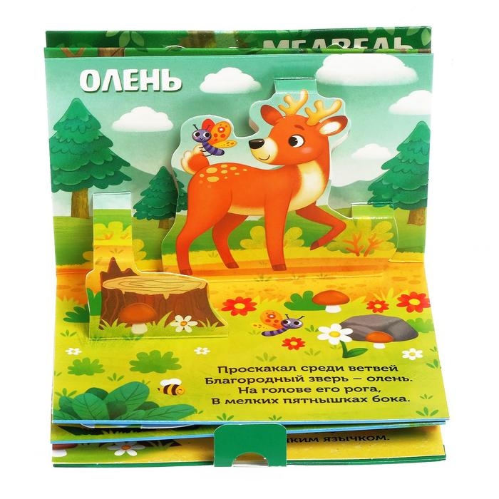 Книга-панорамка сделана из картона, а внутри на каждом развороте есть 3D-иллюстрации, которые оживят рассказы. В книге 5 разворотов.