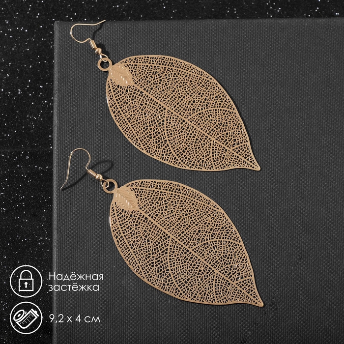 Серьги металл «Лист липы», цвет золото
