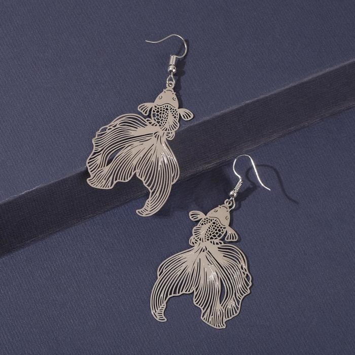 Серьги металл «Рыбка» волшебство, цвет серебро