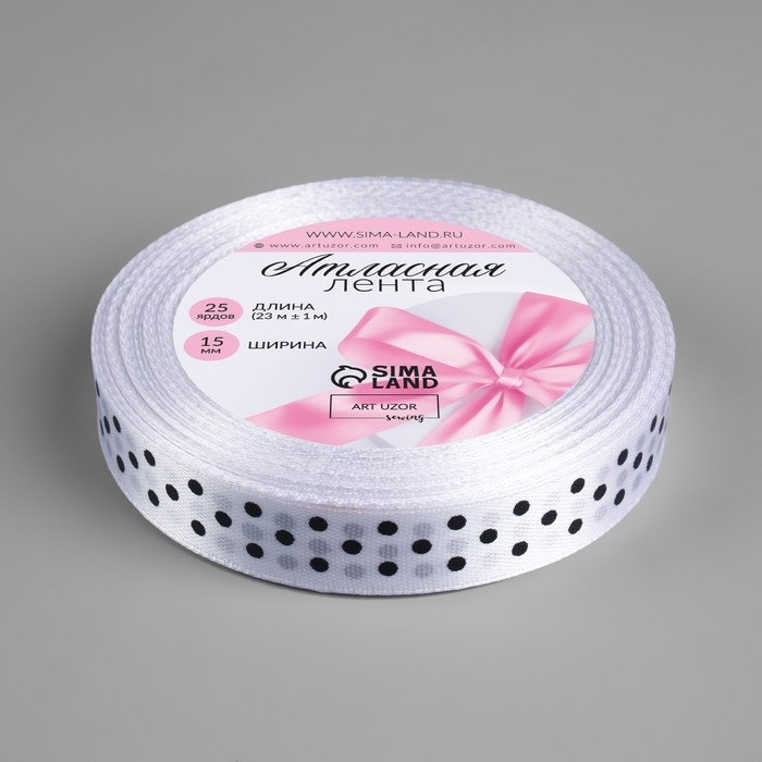 Лента атласная «Горошек», 15 мм × 23 ± 1 м, цвет белый №001