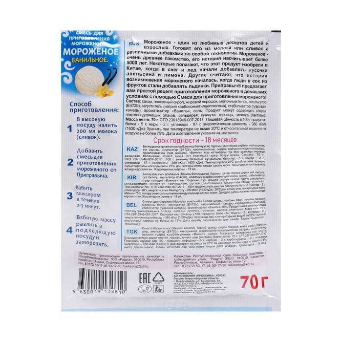 Смесь для приготовления мороженого «Приправыч», ванильное, 70 г