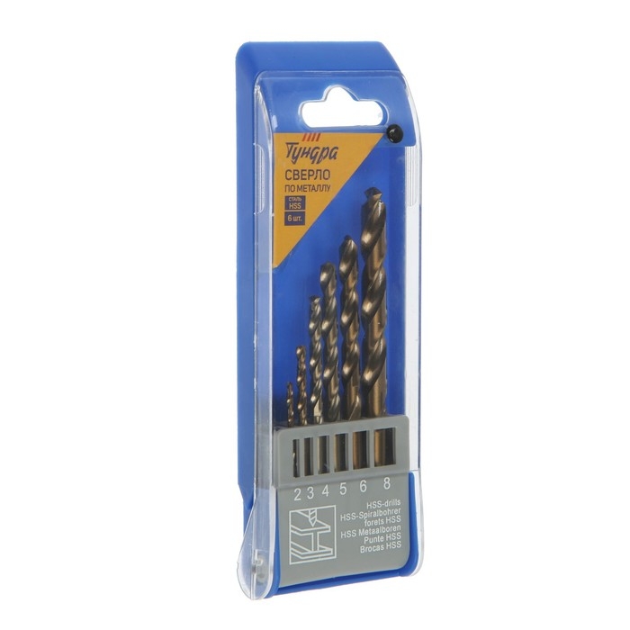 Набор сверл по металлу ТУНДРА, HSS, полированные, цилиндр. хвост., 2-3-4-5-6-8 мм, 6 шт.
