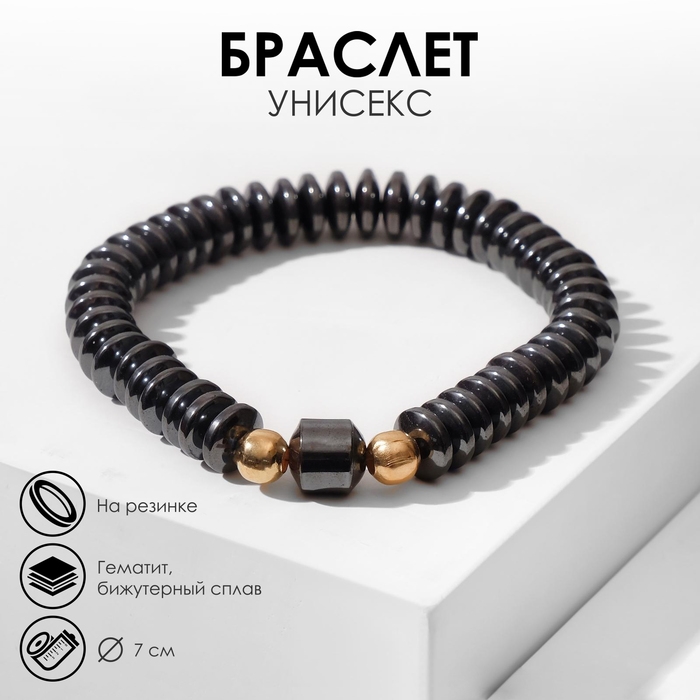 Браслет унисекс «Гематит» диски, цвет чёрный с золотом, d=7 см