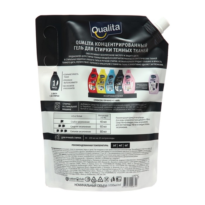 Жидкое средство для стирки Qualita, гель, для тёмных тканей, 1 л