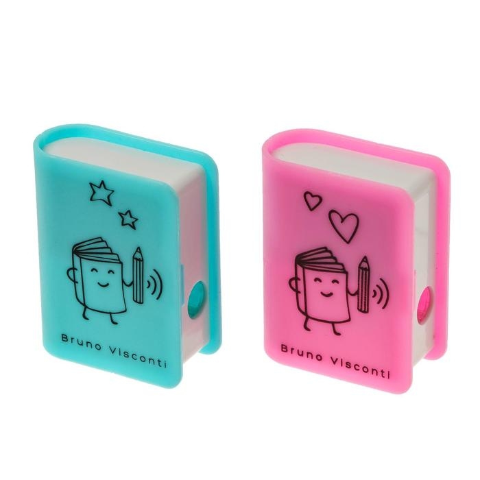 Точилка одно отверстие FUNSHARP "Книга", с ластиком, в контейнере, МИКС