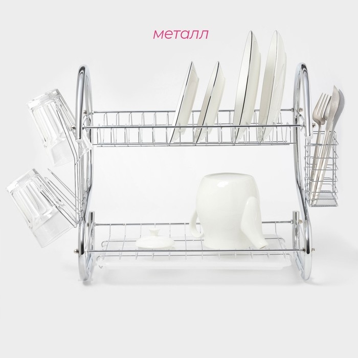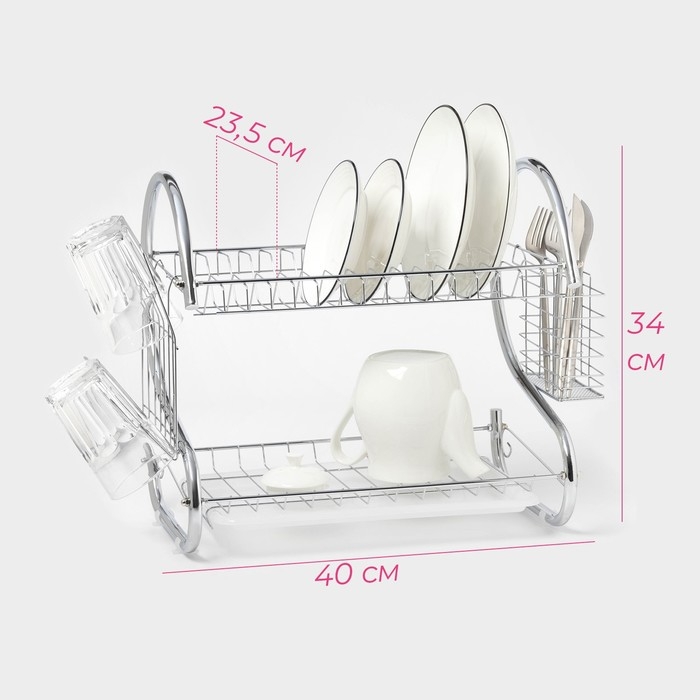 Сушилка для посуды Доляна «Стойка», S-образная, 40×23,5×34 см, цвет хром