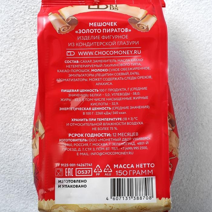 Монеты шоколадные Мешочек "Золото Пиратов", МИКС, 150 г