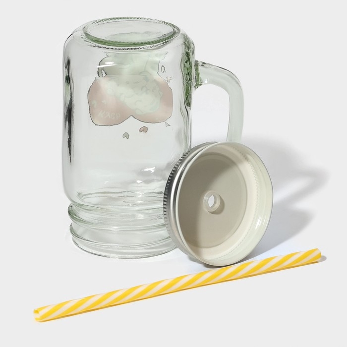 Кружка стеклянная с крышкой и трубочкой Доляна «Галерея», 500 мл, 11×8×13,5 см, цвет МИКС