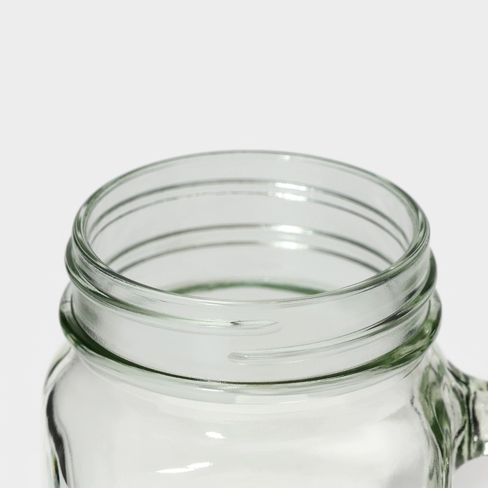 Банка с ручкой оснащена удобной ручкой и крышкой, она завоевала уважение тех, кто обожает здоровое питание. В оригинальной кружке можно даже готовить полезные завтраки, например, гранолу с йогуртом. Часто используется в барах для подачи коктейлей и лимонадов.