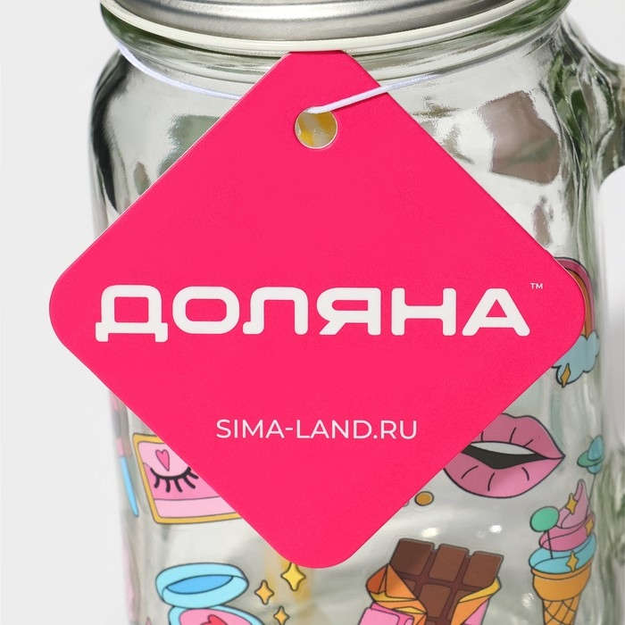 Кружка стеклянная с крышкой и трубочкой Доляна «Галерея», 500 мл, 11×8×13,5 см, цвет МИКС