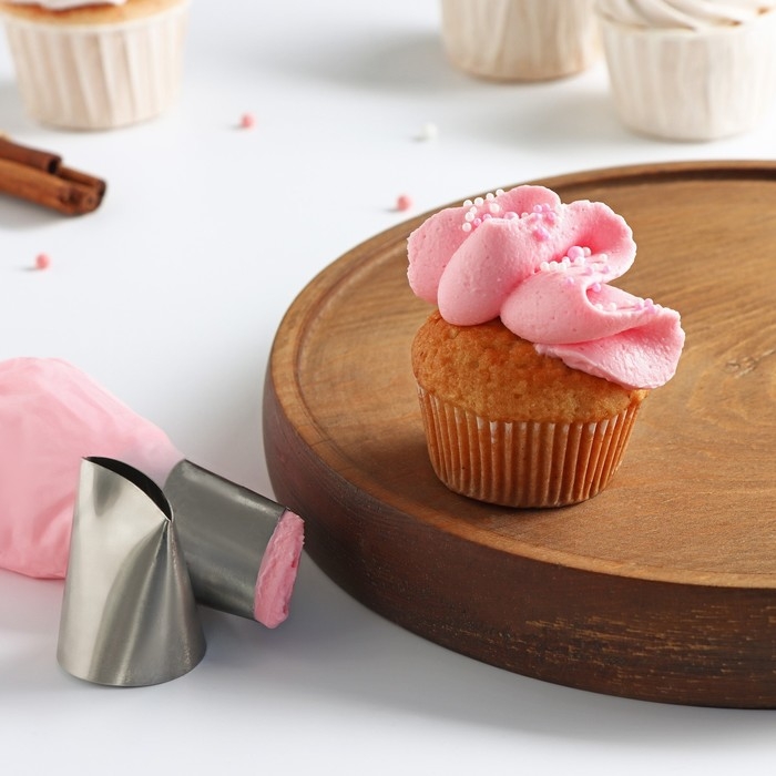 Насадка предназначена для нанесения на десерты необычных украшений из крема. Пользоваться изделием просто: достаточно присоединить его к универсальному кондитерскому мешку.
