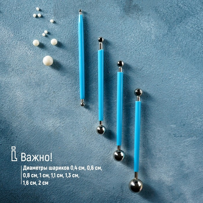 Набор для моделирования кондитерских украшений KONFINETTA, 4 шт, диаметры шариков 0,4 см, 0,6 см, 0,8 см, 1 см, 1,1 см, 1,3 см, 1,6 см, 2 см