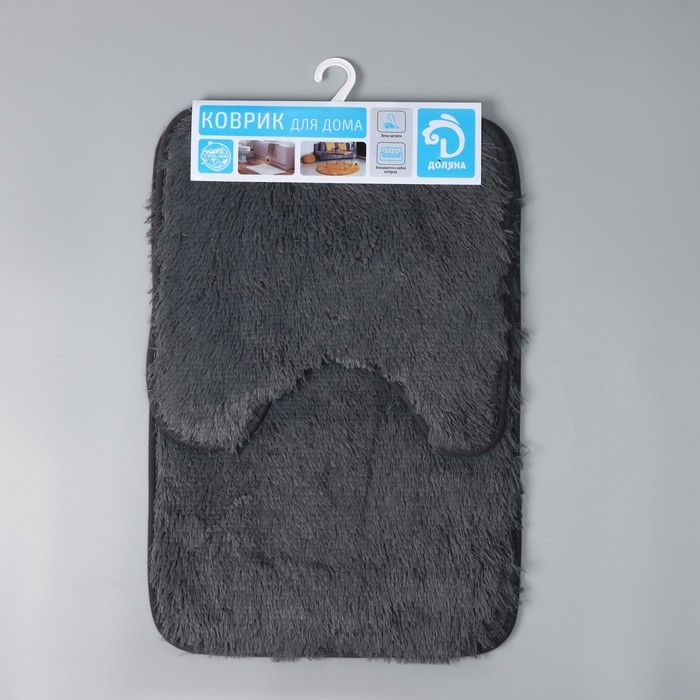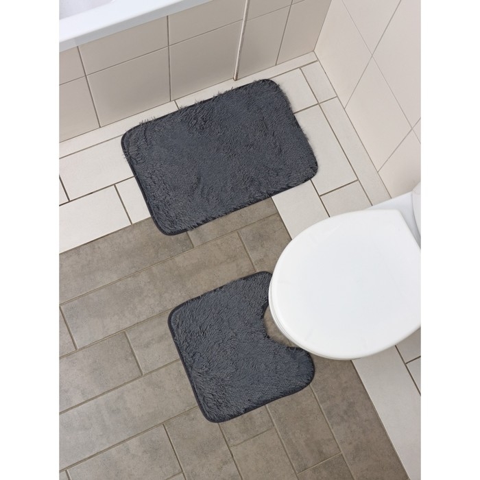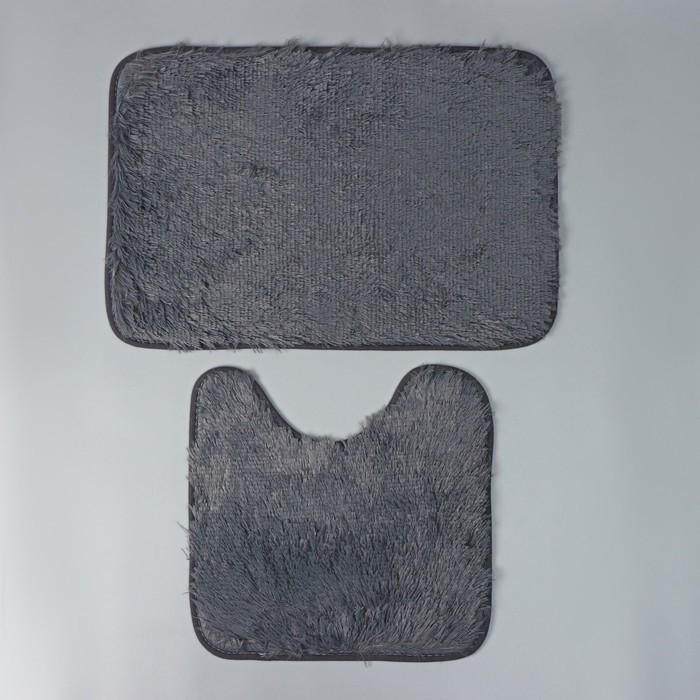 Коврики для ванной и туалета Доляна «Пушистик», 2 шт: 38×40 см, 40×60 см, цвет серый