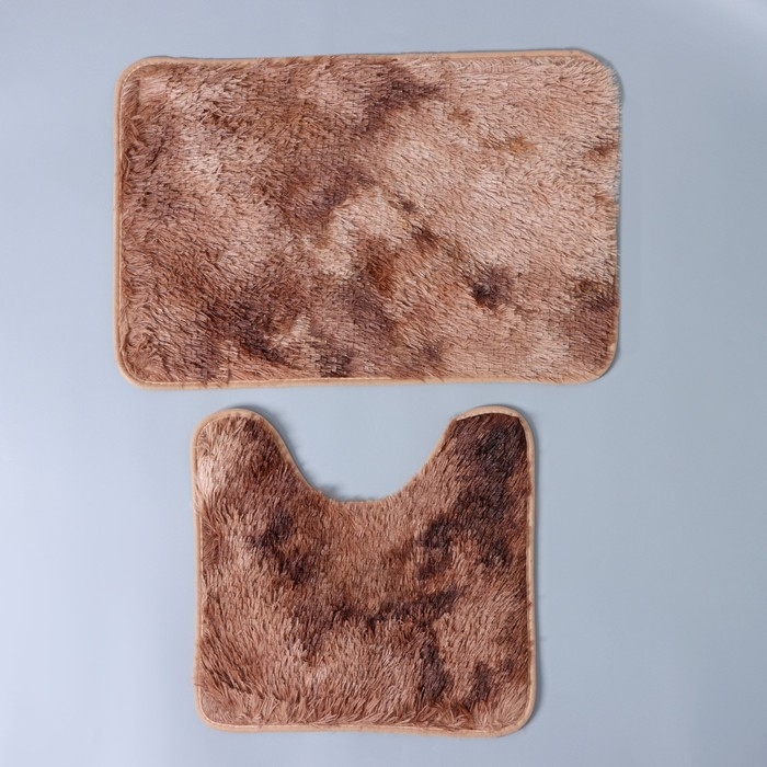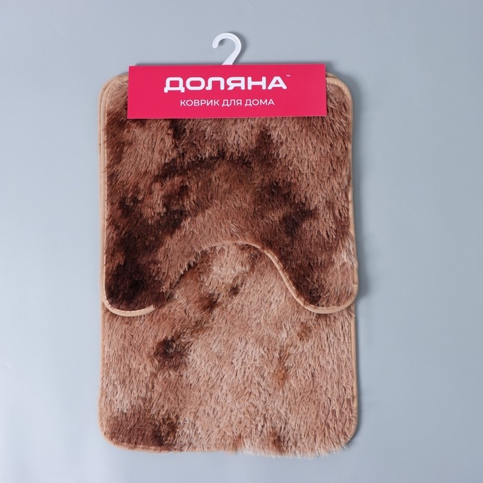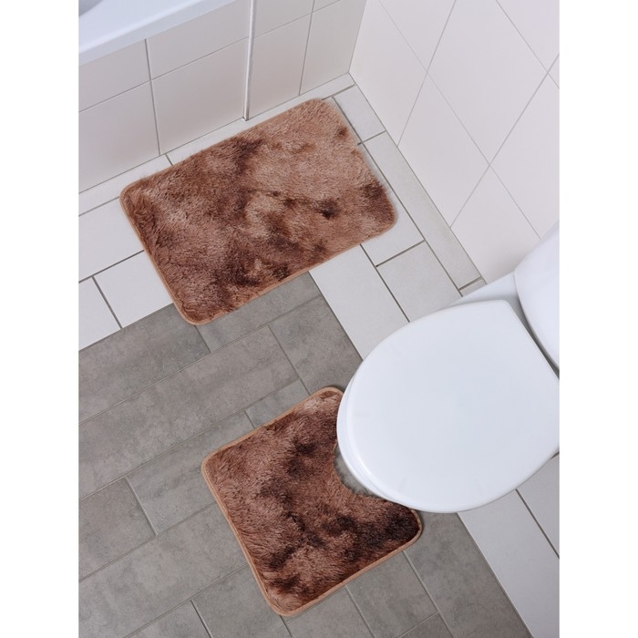 Коврики для ванной и туалета Доляна «Пушистик», 2 шт: 38×40, 40×60 см, цвет коричневый