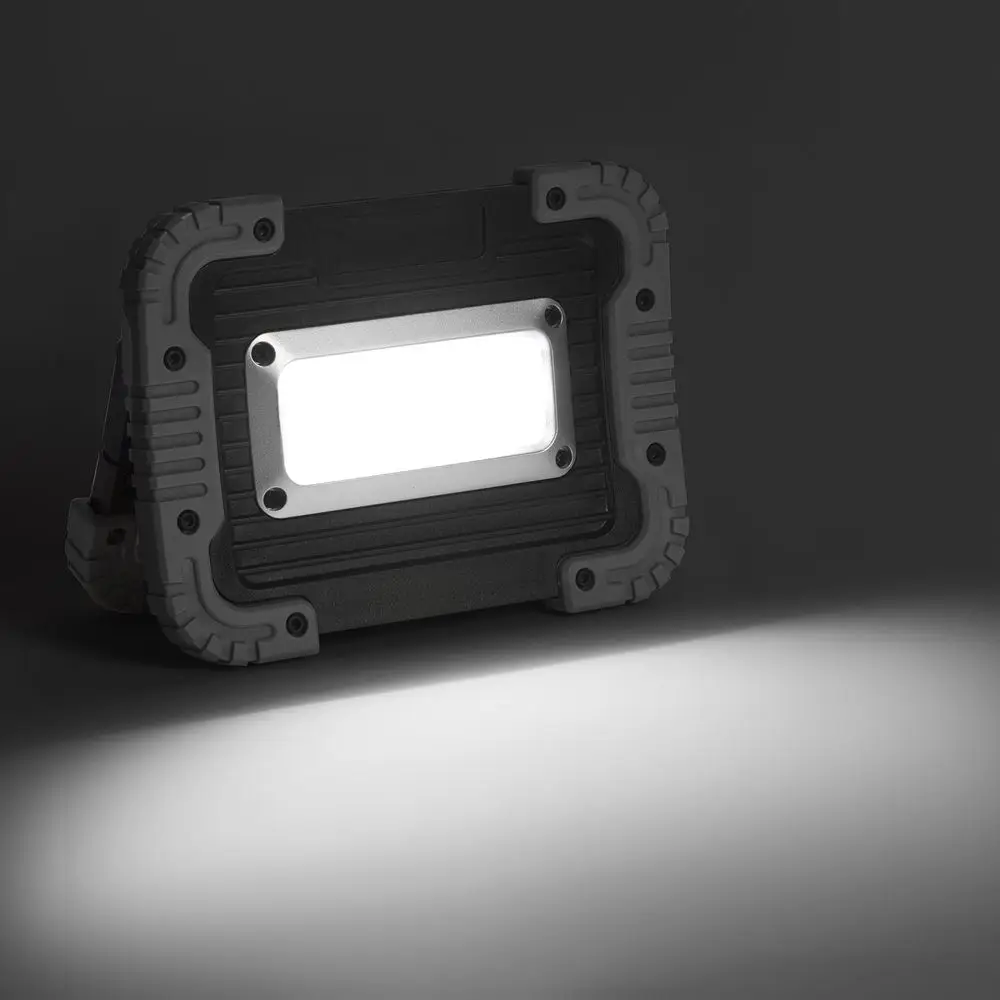 Мощный аккумуляторный фонарь для кемпинга, дачных выездов и строительных работ. Вращающаяся на 180° ручка позволяет зафиксировать фонарь в нужном положении. Встроенный аккумулятор имеет выход USB, который позволяет использовать фонарь в качестве источника питания для зарядки телефона.