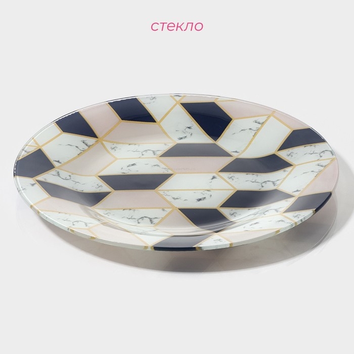 Тарелка стеклянная Доляна «Розовый мрамор», d=23 см