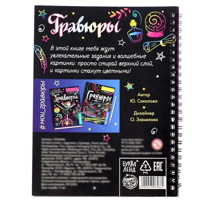 Активити-книга с гравюрами подойдёт в качестве презента, чтобы порадовать ребёнка или поощрить за успехи. Творчество подарит девочкам и мальчикам радость, станет любимым хобби, поможет отвлечься от гаджетов и провести время с пользой.