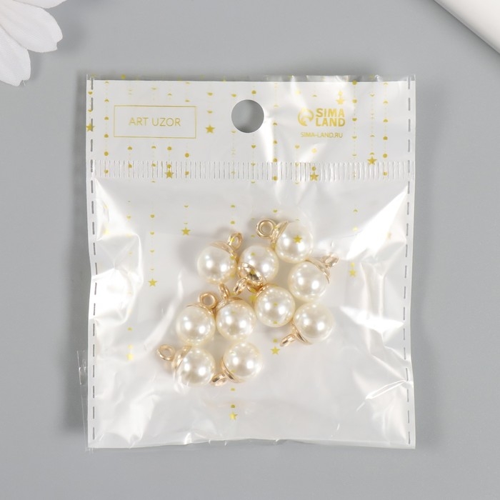 Декор для творчества пластик "Жемчужный шарик с петелькой-шляпкой" набор 10 шт 1х1х1 см