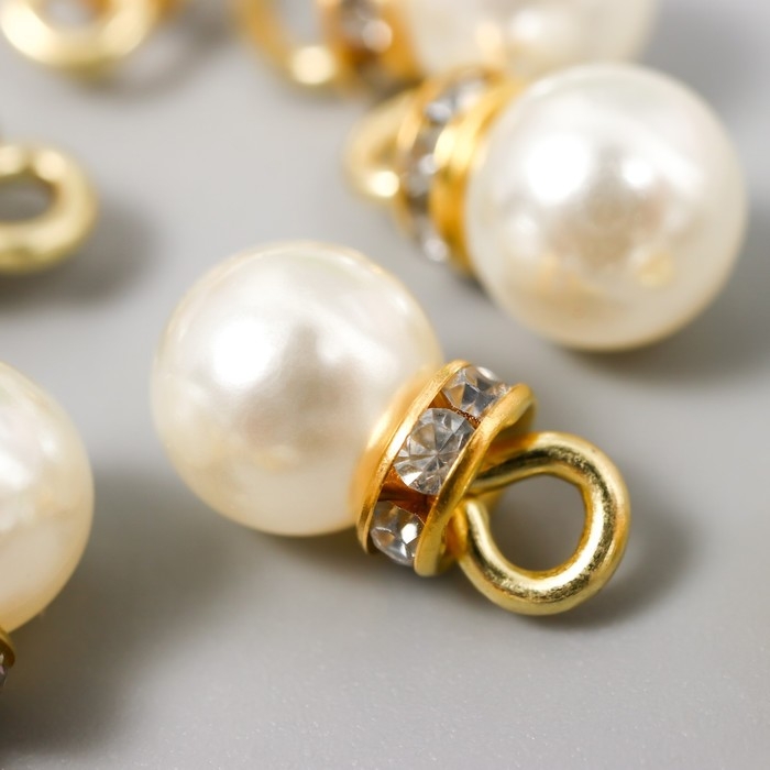 Декор для творчества пластик "Жемчужный шар с петелькой-кольцом" набор 15 шт 1,2х0,8х0,8 см