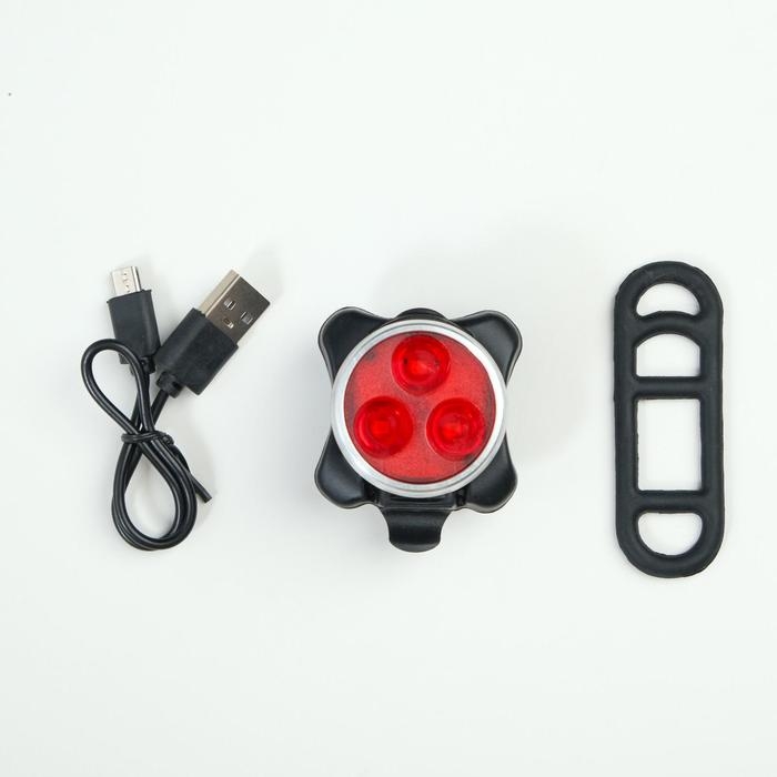 Фонарь велосипедный передний аккумуляторный, водонепроницаемый, 3 диода, 4 режима