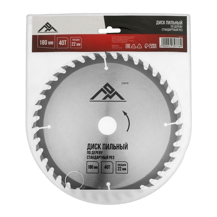 Диск пильный по дереву ЛОМ, стандартный рез, 180 х 22 мм, 40 зубьев