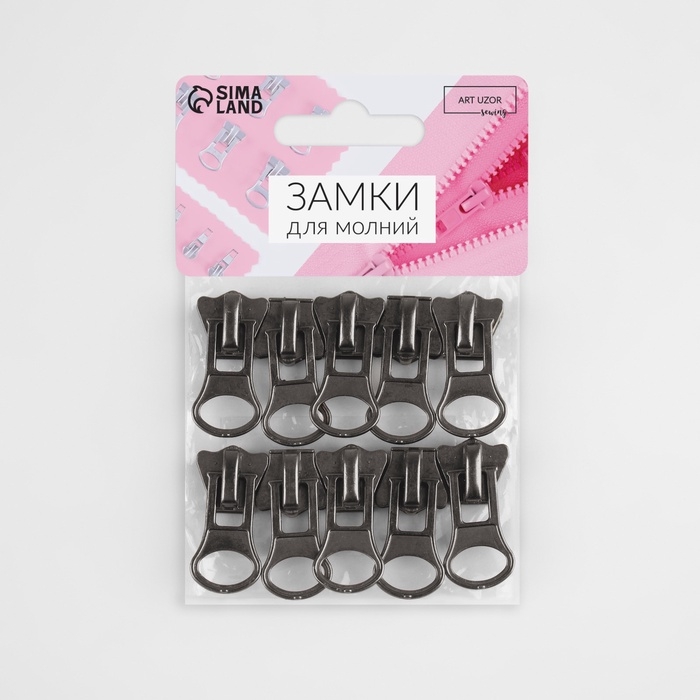 Бегунок автоматический для молнии «Трактор», №8, 10 шт, цвет чёрный никель