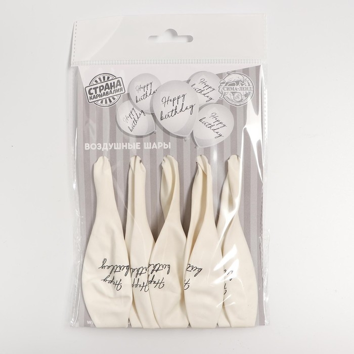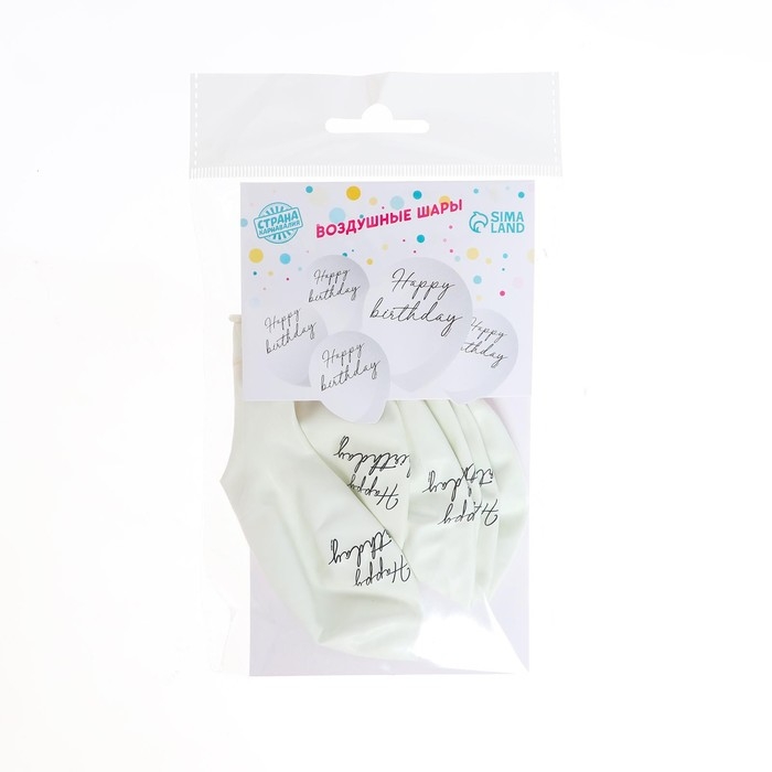 Воздушный шар латексный 12" Happy birthday, классика, 5 шт.