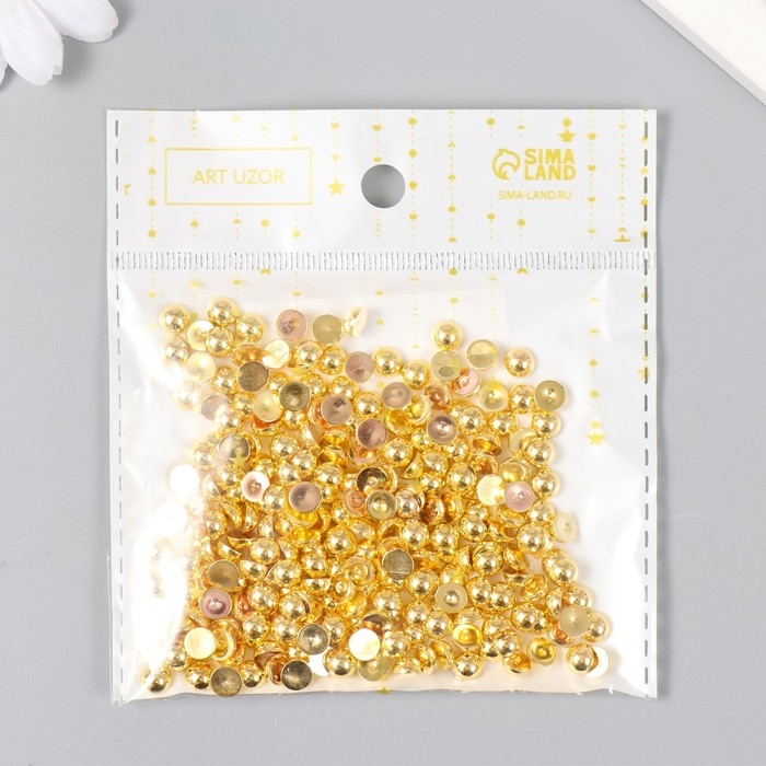 Декор для творчества пластик "Полужемчужина золотистая" набор 250 шт 0,5х0,5х0,3 см