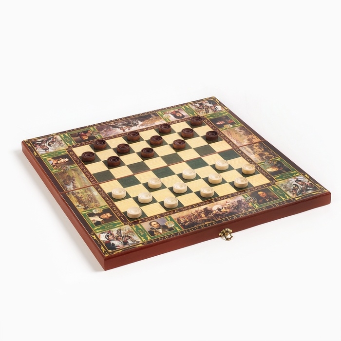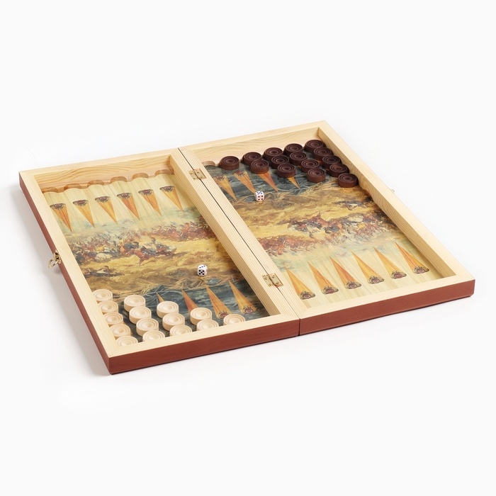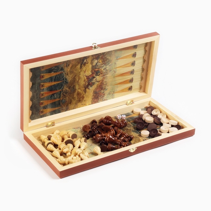 Настольные игры 3 в 1 "Бородино": шахматы, шашки, нарды, деревянные, большие, 50 х 50 см