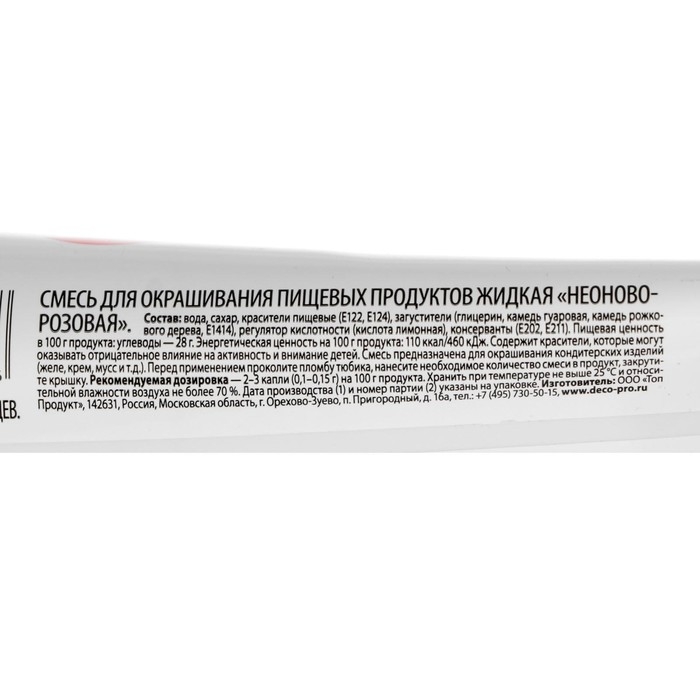 Пищевой краситель Top Decor гелевый «Неоново-розовый»,100 г
